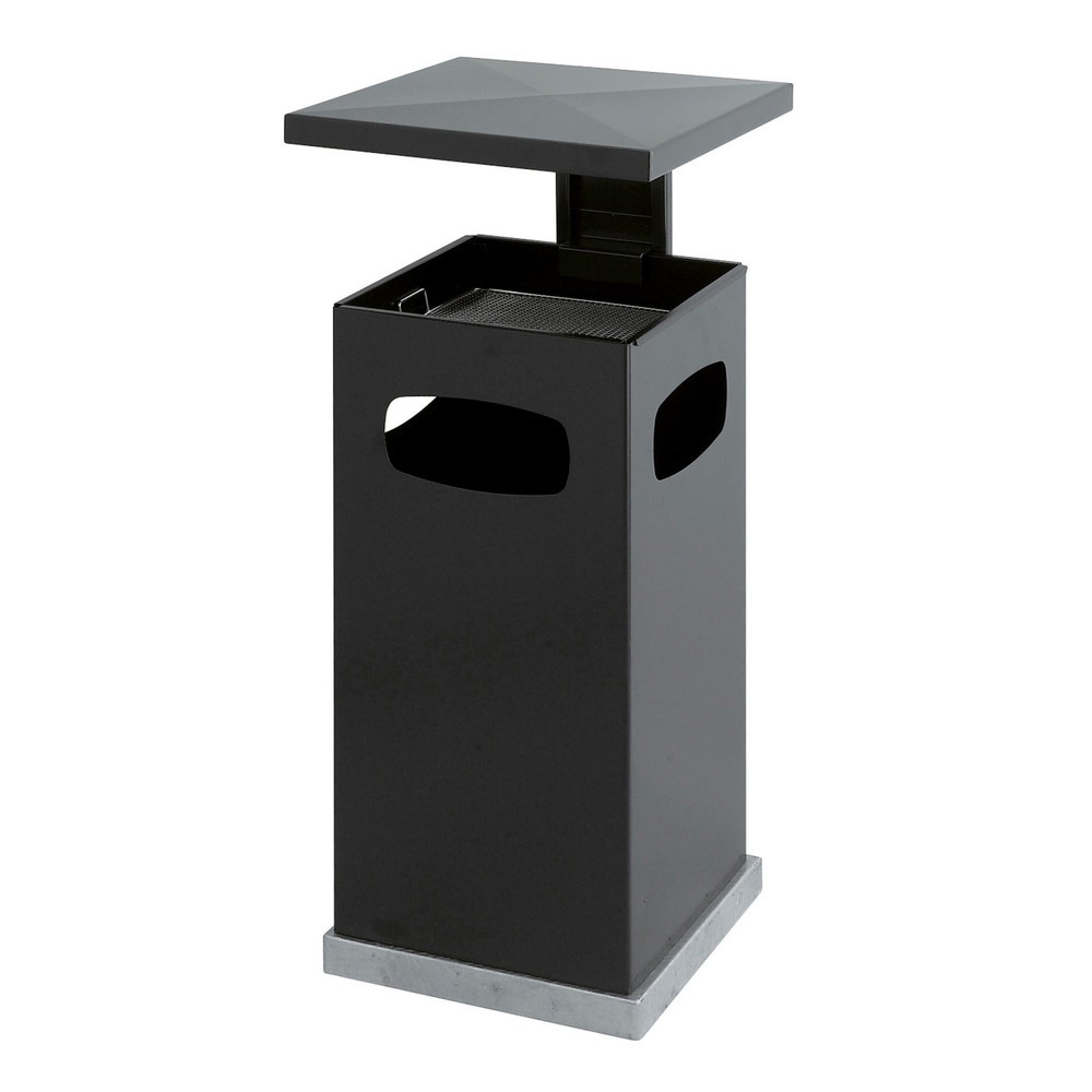 Ascher-Abfall-Kombination aus Stahl, quadratisch, abnehmbares Dach, 70 Liter, anthrazit