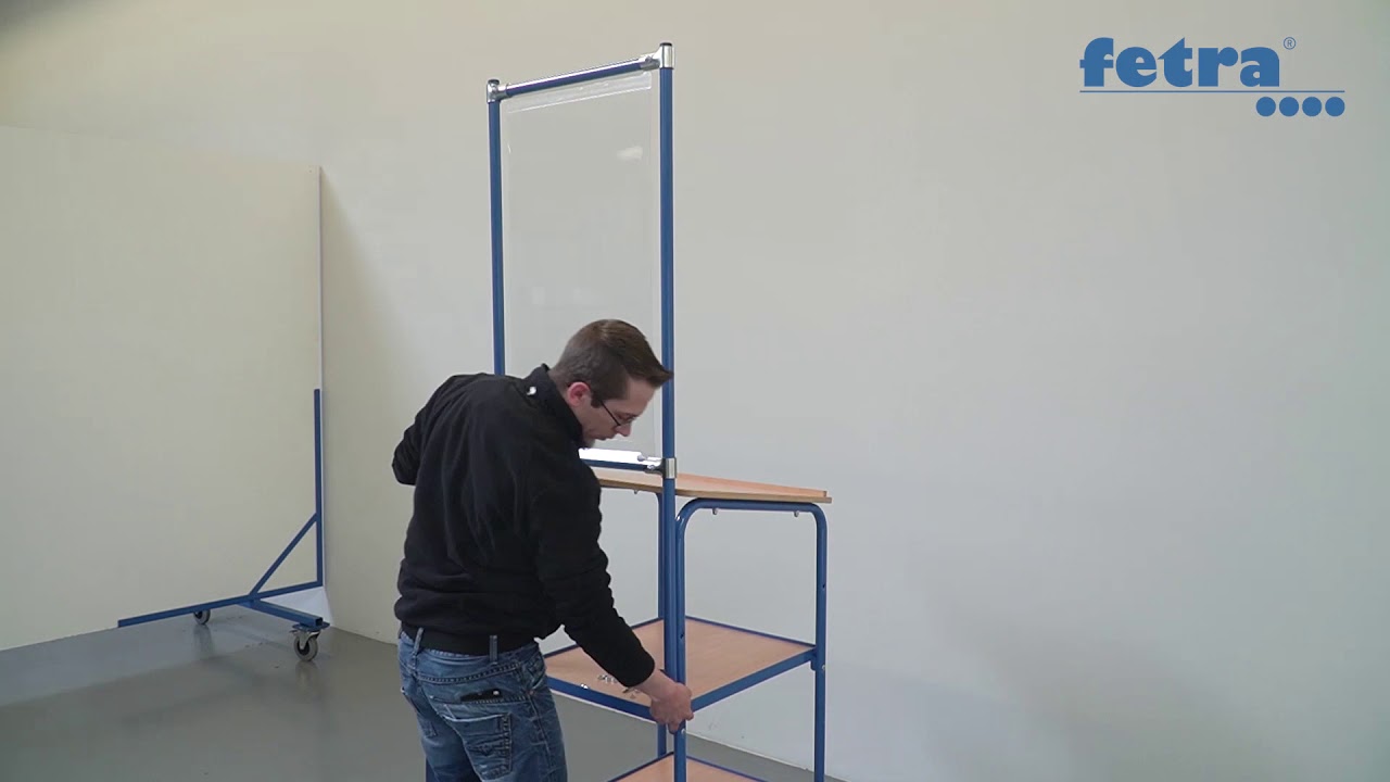 Der fetra® Anbausatz Infektionsschutzrahmen bietet eine effektive Lösung zur Einrichtung von Infektionsschutzmassnahmen, indem er sich leicht an viele fetra Transportgeräte anbringen lässt. Die Rahmenkonstruktion aus verschraubtem Stahlrohr ist pulverbeschichtet in einem attraktiven Blau (RAL 5007). Eine transparente PVC-Folie fungiert als Barriere gegen Tröpfcheninfektionen, beispielsweise mit dem Coronavirus. Die Selbstmontage gestaltet sich einfach mittels Kunststoffschellen und ist auch nachträglich möglich. Darüber hinaus ist die Höhe des Rahmens justierbar, wodurch beispielsweise eine Durchreiche geschaffen werden kann.