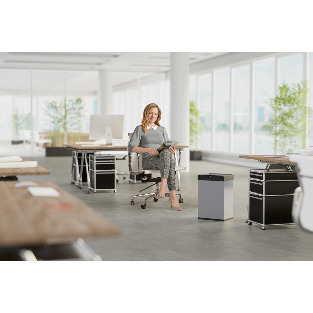 Mit ihrem grossen Volumen bietet die Hailo Grossraum-Abfallbox viel Raum für den Müll und Abfall, der sich täglich in Büros und Sozialräumen sammelt. Der automatisch schliessende Deckel mit Deckelverrastung erleichtert Ihnen den Befüllvorgang.