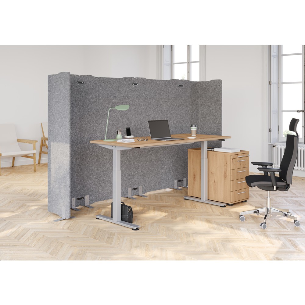 Der Hammerbacher Schreibtisch mit elektrischer Höhenverstellung bietet eine komfortable Lösung zur Einrichtung ergonomischer Arbeitsplätze. Dank der beiden leistungsstarken Elektromotoren erfolgt die Höhenanpassung der Tischplatte leise, gleichmässig und stufenlos. So wechseln Sie flexibel zwischen sitzender und stehender Tätigkeit, fördern die Durchblutung und beugen Haltungsschäden vor.