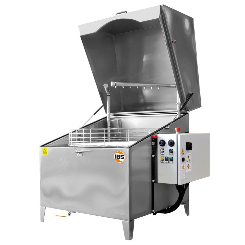 Wer Mengen an Kleinteilen reinigen muss, findet in den Waschautomaten von IBS die optimale Lösung: Das verschmutzte Reinigungsgut wird in den drehbaren Waschkorb gelegt und der Deckel geschlossen. Nach Einstellung der gewünschten Waschtemperatur und -zeit, wird das Gerät eingeschaltet und die Lauge im Tank erhitzt, dann beginnt der vollautomatische Reinigungsprozess: Im geschlossenen Gerät rotiert der Korb mit konstanter Geschwindigkeit um die eigene Achse. Die Pumpenaggregate saugen die Waschlauge aus dem Waschtank und fördern sie durch Edelstahldüsenrohre mit überlappend eingestellten Flachstrahldüsen. Das Reinigungsgut wird bei gleichmässiger Rotation des motorisch angetriebenen Korbs von allen Seiten intensiv mit der heissen Lauge abgestrahlt. Nach Beendigung des Reinigungsvorgangs schaltet das Gerät automatisch ab.
