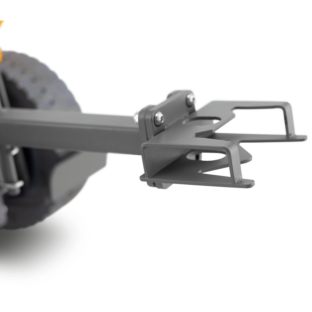 Dank seines geringen Gewichts und der kompakten Bauweise ist der Geh-Schlepper besonders wendig, so dass Sie ihn auch bei beengten Platzverhältnissen sicher einsetzen. Der EZS 010 verfügt über einen Schleichfahrtmodus, der das Manövrieren des Schleppers in besonders langsamem Tempo ermöglicht. Die kompakte Bauart bietet ausserdem eine optimale Sicht auf die Kupplung, so dass Sie die Verbindung zu den Anhängern jederzeit im Blick haben. Zwei grosse Antriebsräder aus spurlosem Vollgummi erleichtern das Rangieren auch auf unebenen Böden. Einen wirksamen Auffahrschutz gewährleisten die Schutzbügel an den Rädern. Die beiden stabilen Lenkrollen aus Polyurethan sorgen für optimale Stabilität.