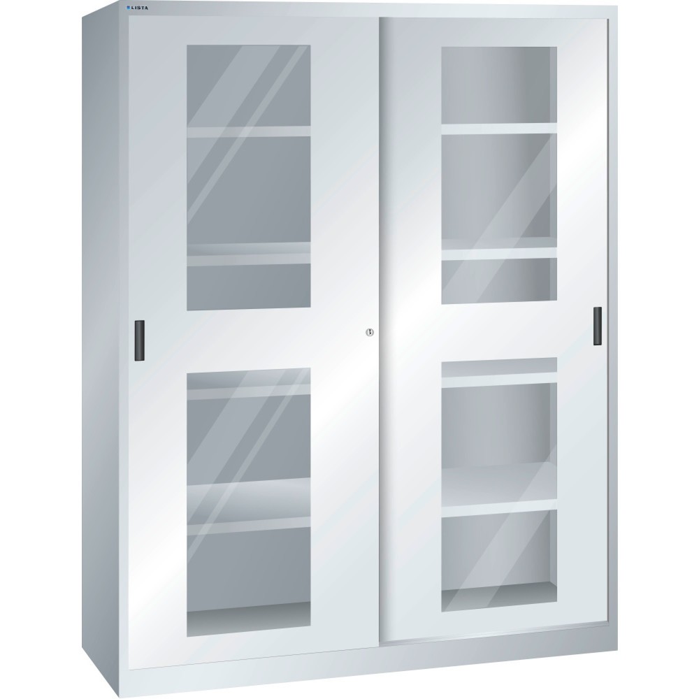 LISTA Schiebetürschrank, (BxTxH) 1500x400x1950mm, 8 Verstellböden, Sichtfenster, Tiefe 400mm, lichtgrau