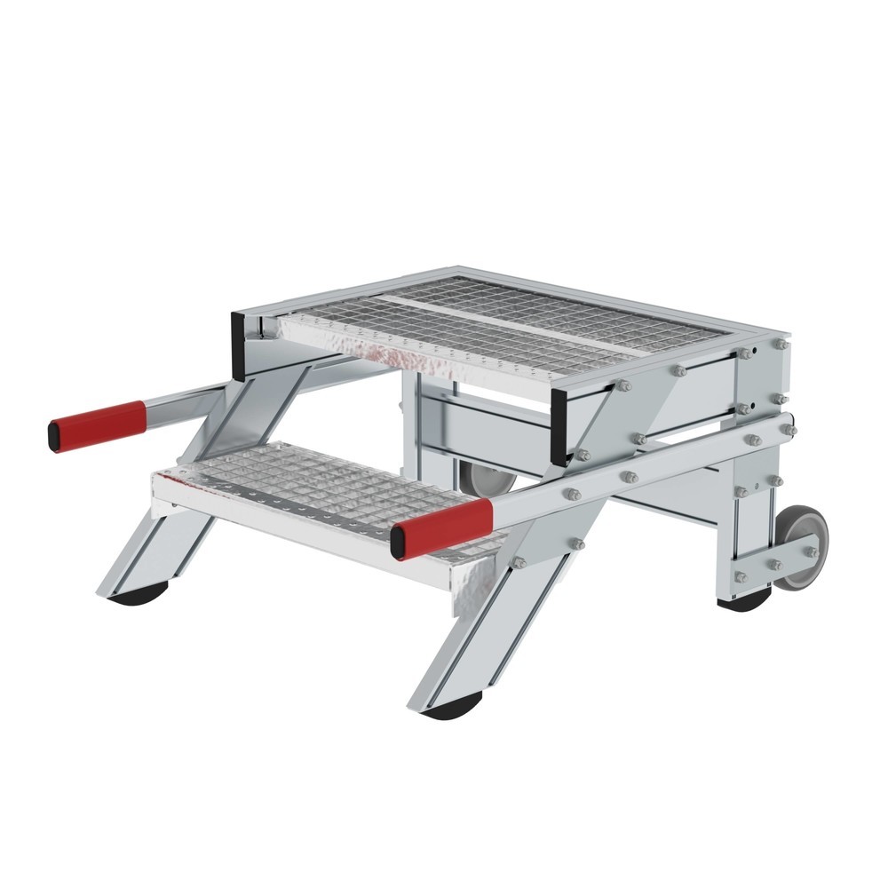 Munk Arbeitspodest fahrbar, Stufenbreite 600 mm, Stahl-Gitterrost 2 Stufen