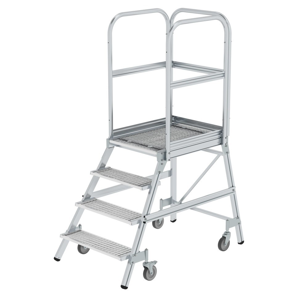 Munk Podesttreppe einseitig begehbar mit Federrollen Stahl-Gitterrost 4 Stufen