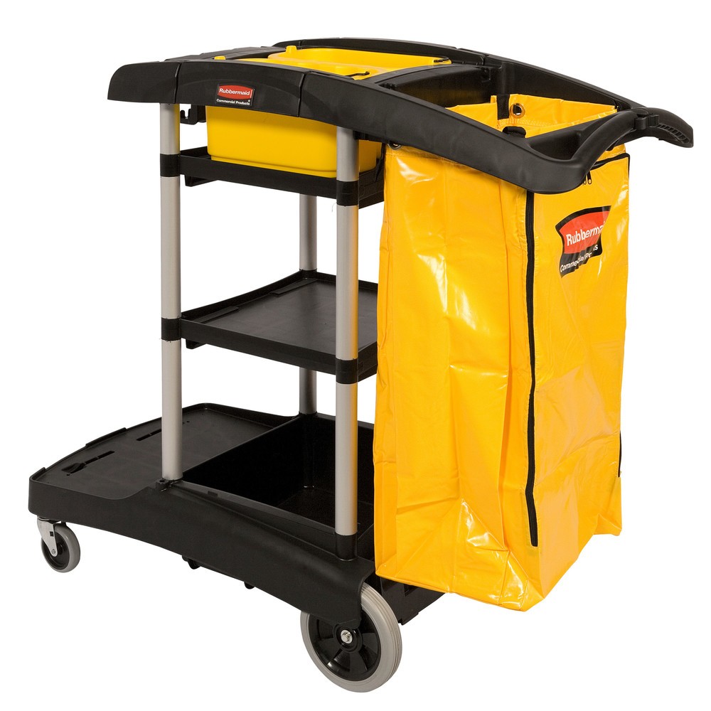 Der Reinigungswagen Rubbermaid® High Capacity bietet Ihnen eine effiziente Lösung für grossflächige Raumpflege-Einsätze. Stabile Konstruktion, viel Platz für Putzmittel und grosse, abdruckfreie Lenkrollen machen Ihnen das Reinigen und Schieben des Wagens leicht.