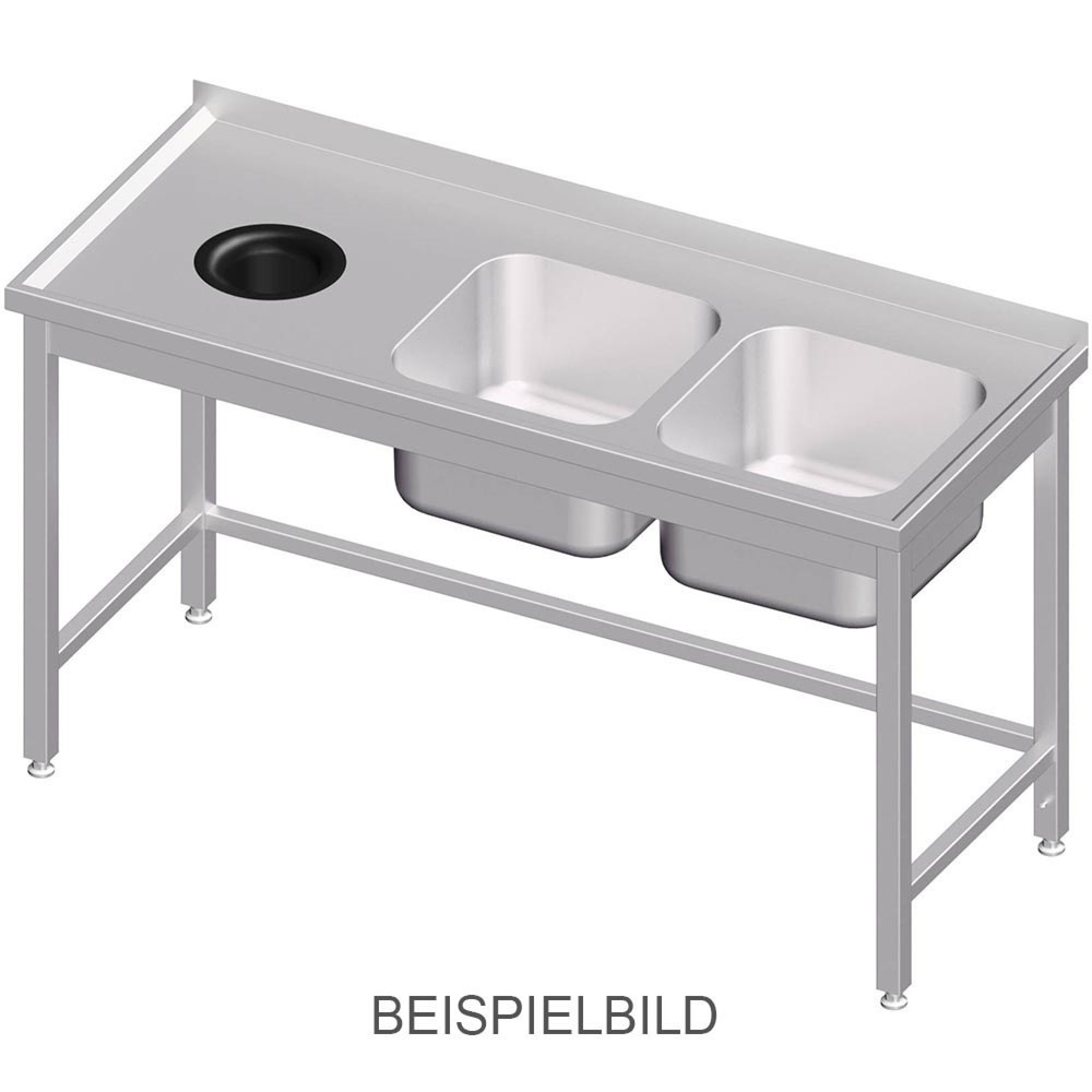 Stalgast Spültisch ohne Grundboden, mit Abfallloch, 1400x700x850 mm, mit zwei Becken links, mit Aufkantung, verschweisst