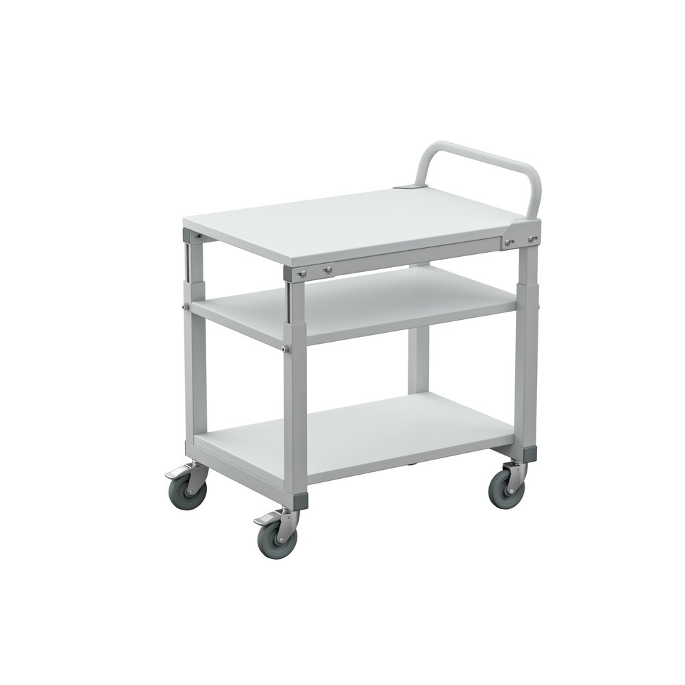 Mit dem TRESTON Tischwagen ESD vergrössern Sie die Arbeitsfläche Ihres Arbeitstisches im Handumdrehen. Via Inbusschlüssel können Sie die Höhe des mobilen Wagens zwischen 650 und 900 mm individuell an Ihre Bedürfnisse und Gegebenheiten anpassen. Gefertigt aus epoxidpulverbeschichtetem Stahl, einer halbleitfähigen Spanplatte mit Laminat-Oberfläche und 4 ESD-Rollen, ist die Konstruktion effektiv vor Schäden durch elektrostatische Entladung geschützt und auch für industrielle Umgebungen geeignet. Mit einer Tragfähigkeit von 150 kg ist der fahrbare Etagenwagen auch zum Transportieren schwerer Utensilien verwendbar.
