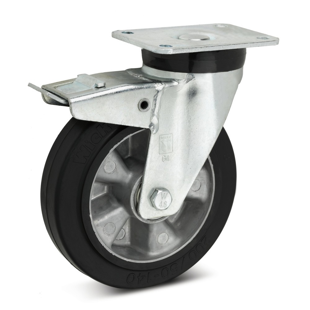 Polyurethan-Schwerlast-Rad Wicke, RillenkugellagerLenkrolle Wicke Topthane® PU, inkl. Feststeller im Nachlauf
