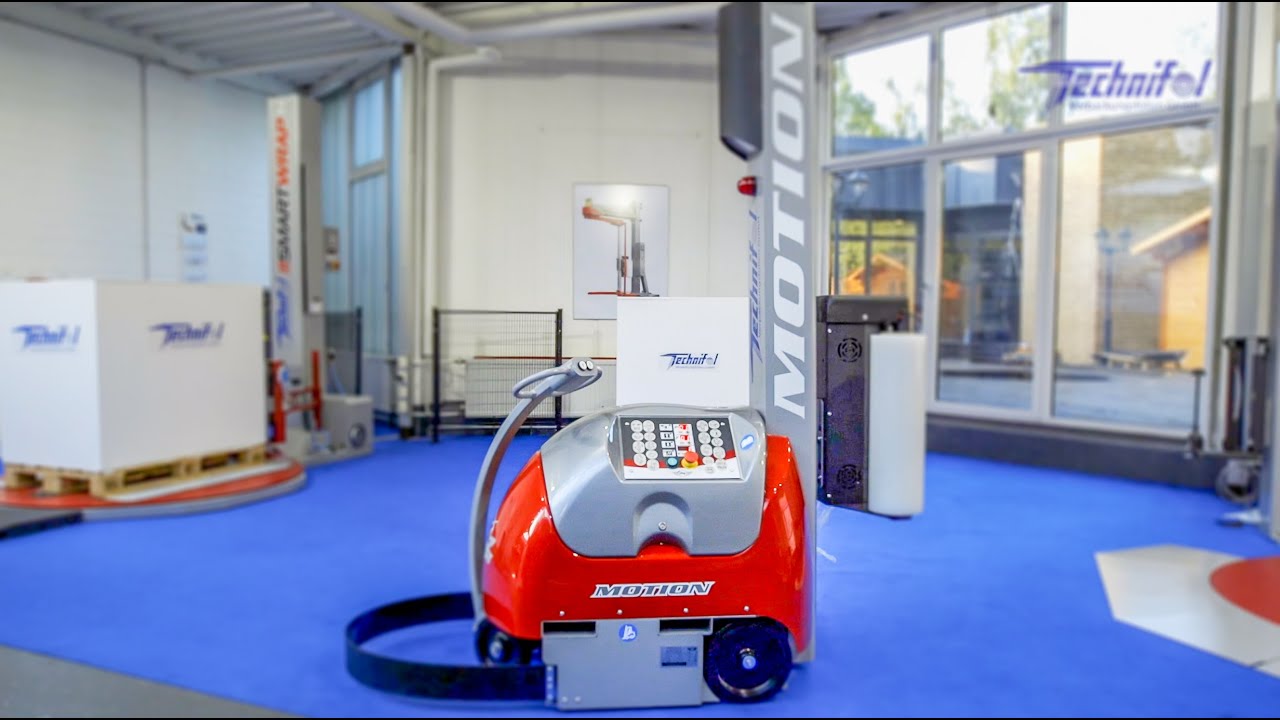 Der PKG Stretchroboter Motion ist die innovative Lösung für das automatische Einstretchen von Palettenladungen jeder Größe, Form und Stabilität. Als batteriebetriebener, mobiler Wickelroboter bietet er höchste Flexibilität in der Verpackung von Gütern in Produktion, Lager oder Versand. Durch seine selbstständige Bewegung um das Packgut und seine einfache Bedienung sorgt der Motion für eine deutliche Zeitersparnis, gleichmäßige Wickelergebnisse und erhöhte Arbeitssicherheit. Er ersetzt stationäre Wickelanlagen und ermöglicht ortsunabhängiges Arbeiten – ideal für wechselnde Einsatzorte und begrenzte Flächen.