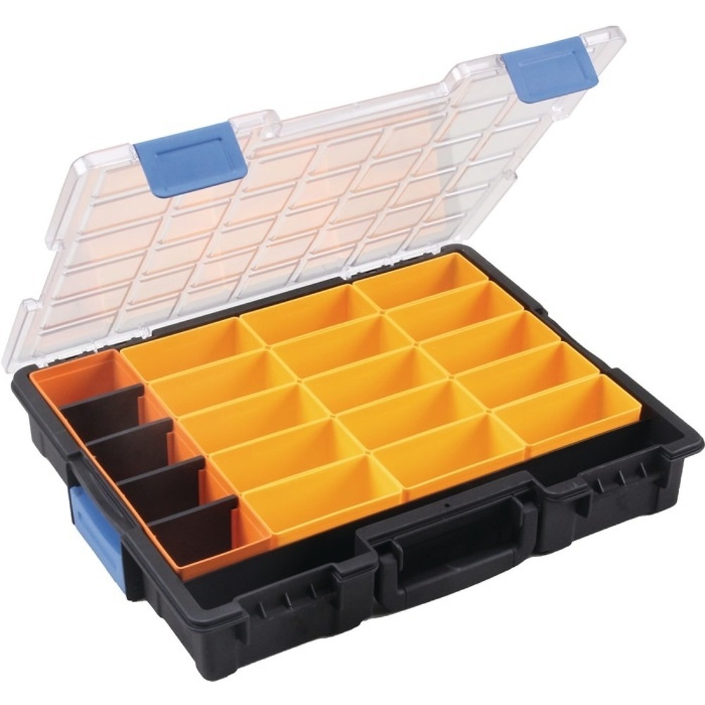 Sortimentskasten Euro Plus Pro, 21 Fächer 4 Trennstege, B440xT355xH76mm, transparent schwarz
