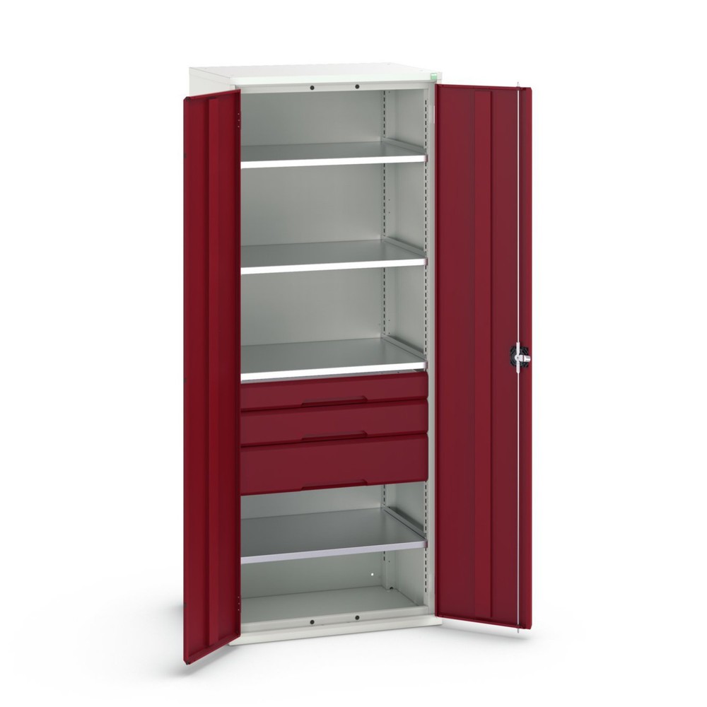 bott Armoire à portes battantes avec tiroirs verso, avec 4 tablettes et 3 tiroirs, lxPxH : 800 x 550 x 2 000 mm