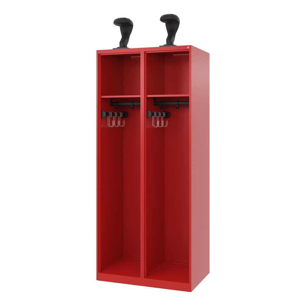 C+P Vestiaire pompier EXPERT, patins, 2 compartiments, HxlxP 1 850 x 800 x 500 mm, rouge feu, avec support de casque