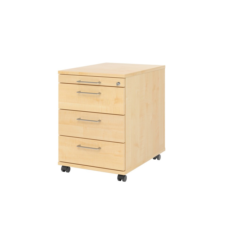 Caisson à roulettes Hammerbacher 58 cm, 3 tiroirs, serrure BS érable