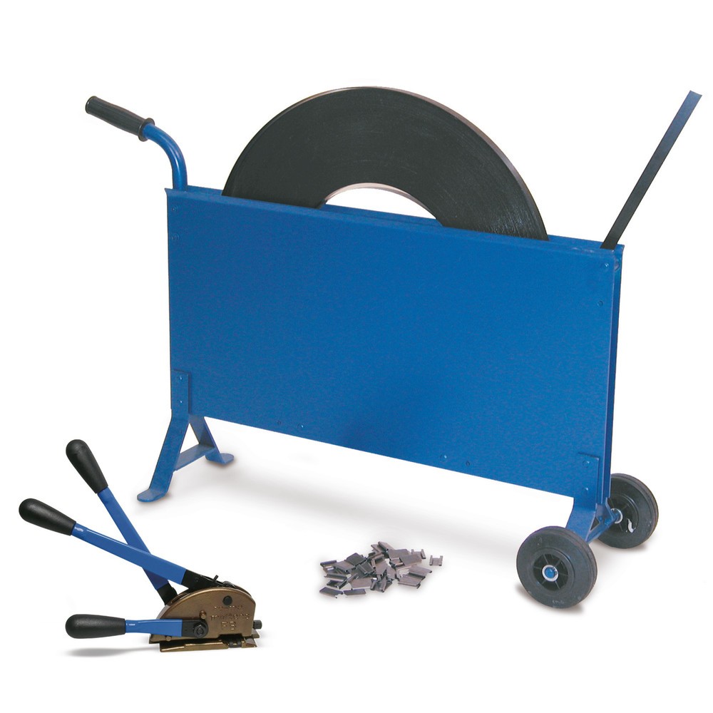 - Chariot dérouleur pour ruban d'acier, avec caisse de rangement