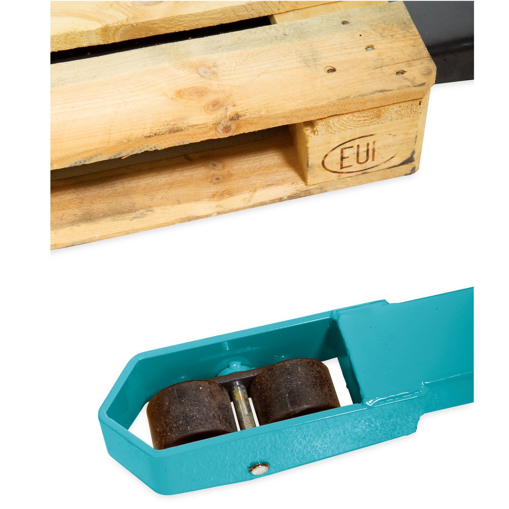 Ce chariot élévateur hydraulique est de qualité Ameise® éprouvée, ce qui le rend robuste et durable. Le chariot polyvalent pratique pour les utilisations occasionnelles en tant qu'engin de levage et de transport évite l’achat d'un matériel électrique onéreux. Grâce à son entraînement manuel, le chariot élévateur est toujours opérationnel et peu coûteux en termes d’entretien et de maintenance. Le gerbeur haute levée convient pour le stockage et le déstockage occasionnels de palettes et d’autres articles jusqu’à 1 600 mm de hauteur ou pour le chargement et le déchargement de camions sans hayon de chargement. Mais c’est surtout lors de la prise transversale de palettes qu’il fait montre de ses atouts. La prise transversale s’effectue en déplaçant les bras de roue sur le côté de la palette. La cote entre les bras porteurs est de 1 250 mm.
