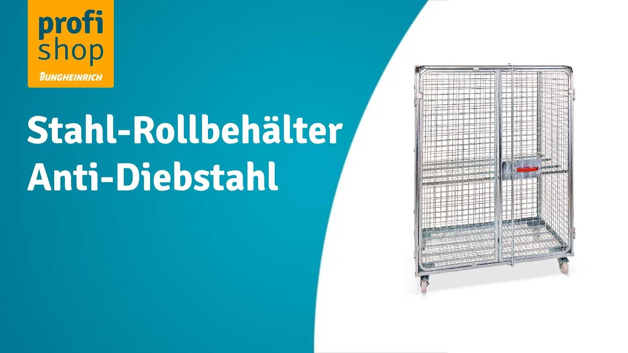 Les produits et objets de valeur sont stockés en toute sécurité dans le conteneur à roulettes en acier antivol entièrement fermé. Grâce à son châssis en acier, sa paroi arrière rivetée, ainsi qu’à ses parois grillagées galvanisées, le conteneur à roulettes offre une stabilité durable.