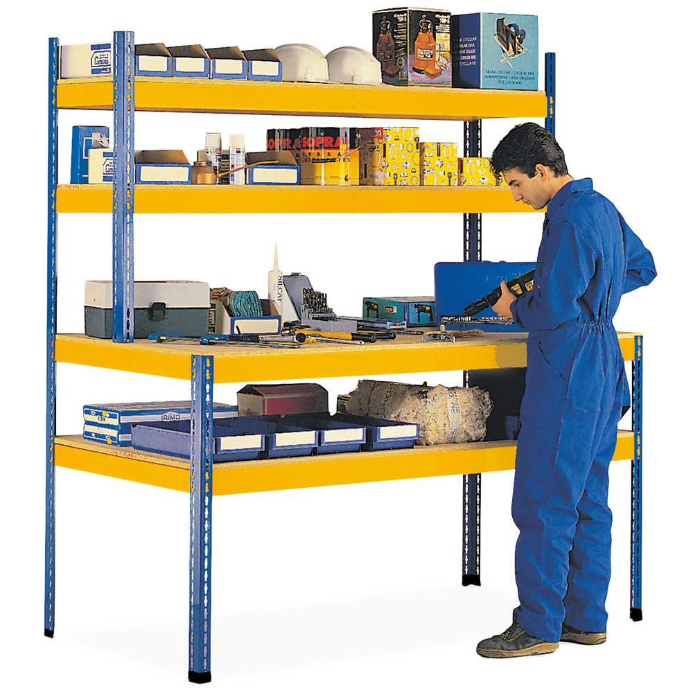 Avec sa surface de travail et de rayonnage, l’établi NGS avec structure forme une robuste unité dans votre environnement d’atelier. En plus du robuste plan de travail, vous disposez de 4 tablettes pour y déposer vos outils électriques. Chaque tablette offre une charge par tablette de 320 kg pour le matériel et autres.