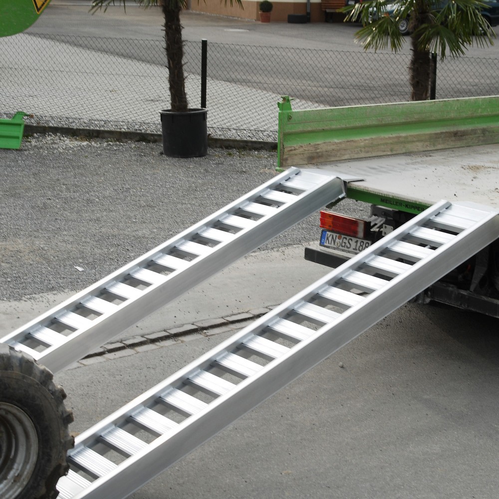 Ces rails de chargement avec barreaux sont conçus pour le chargement d’engins de chantier sur chenilles ou chenilles en acier et convient également pour d’autres véhicules. Grâce à leur faible poids propre, ils sont très flexibles d’utilisation.